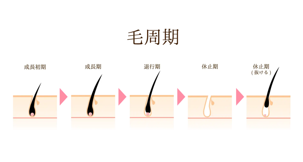 「成長初期」「成長後期」「退行期」「休止期」というサイクルで、生えたり抜け落ちたりを繰り返す周期のこと。